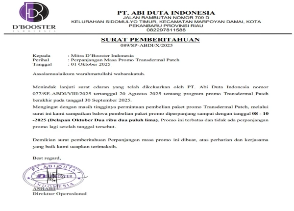Read More D'Booster Indonesia PERPANJANGAN PROMO PRODUK TRANSDERMAL PATCH SAMPAI 08 OKTOBER 2025 ✨ Promo Spesial Transdermal Patch ✨💰...
